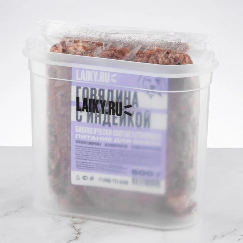Чтобы размораживать питание LAIKY было удобно, рекомендуем использовать специальный пластиковый контейнер. Поместите замороженный пакет внутрь, налейте холодной воды из-под крана и оставьте на 30 минут. Спустя полчаса налейте в ёмкость тёплой воды для придания комнатной температуры содержимому пакета. Через 5 минут корм будет готов к употреблению.