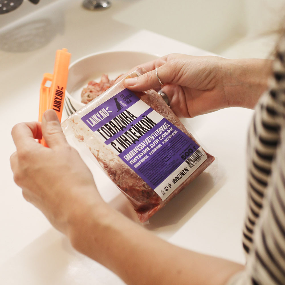 Универсальное приспособление для хранения вскрытого пакета LAIKY. С его помощью вы обеспечите герметичность частично использованной упаковки с кормом — прочная защёлка-клипса гарантирует надёжное закрывание, предотвращает попадание воздуха и лишних запахов внутрь, помогает дольше сохранить свежесть продукта. Зажим рассчитан на многократное применение: компактный и лёгкий, одним движением закрепляется на пакетике и так же легко снимается. При необходимости его можно использовать в морозильной камере.