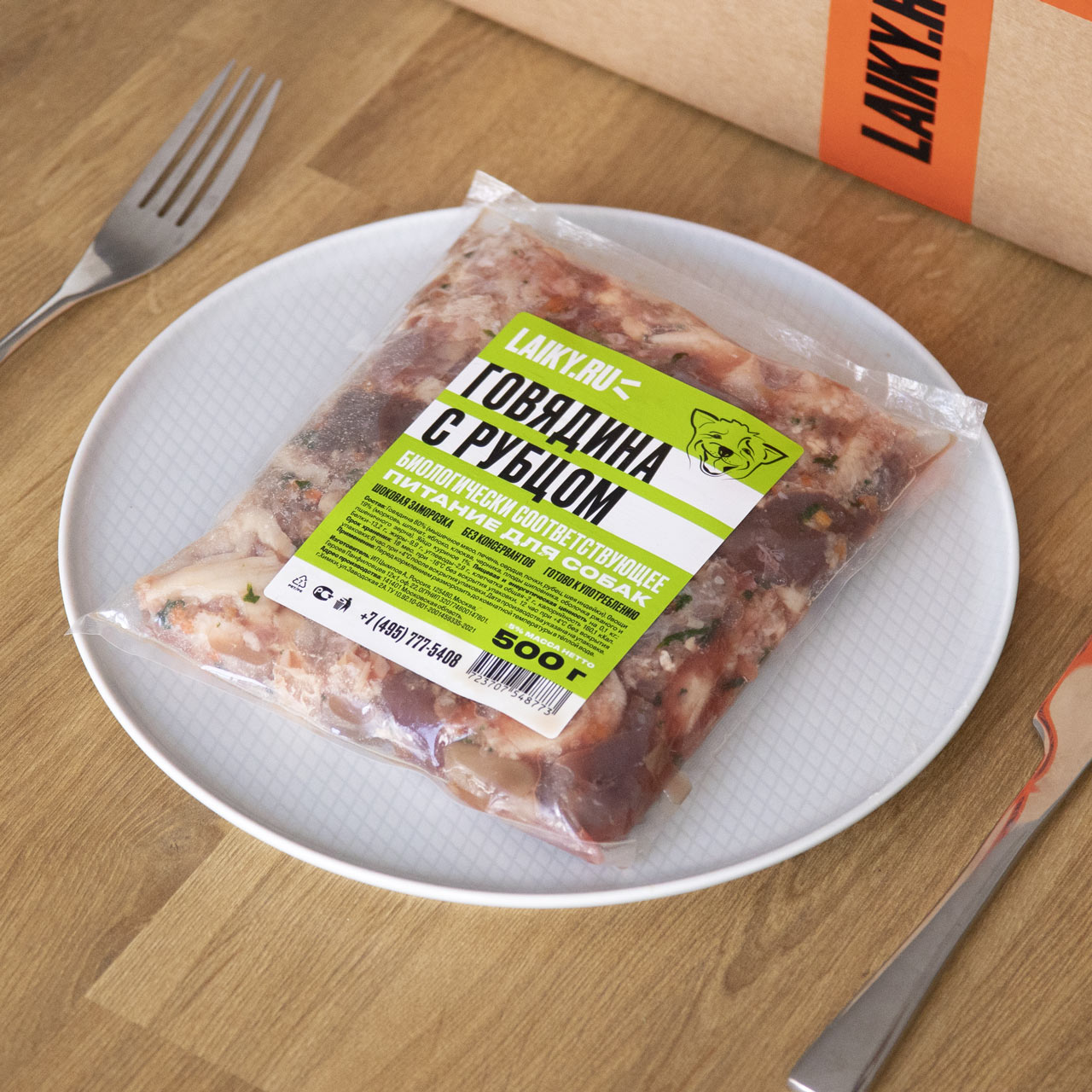 Видотипичное питание LAIKY из говядины с рубцом для собак. Биологически соответствующий рацион для настоящих хищников по системе BARF подойдет собакам любых размеров, пород и любого возраста. Удобные плоские пакеты корма по 500 граммов удобно хранить и размораживать.
