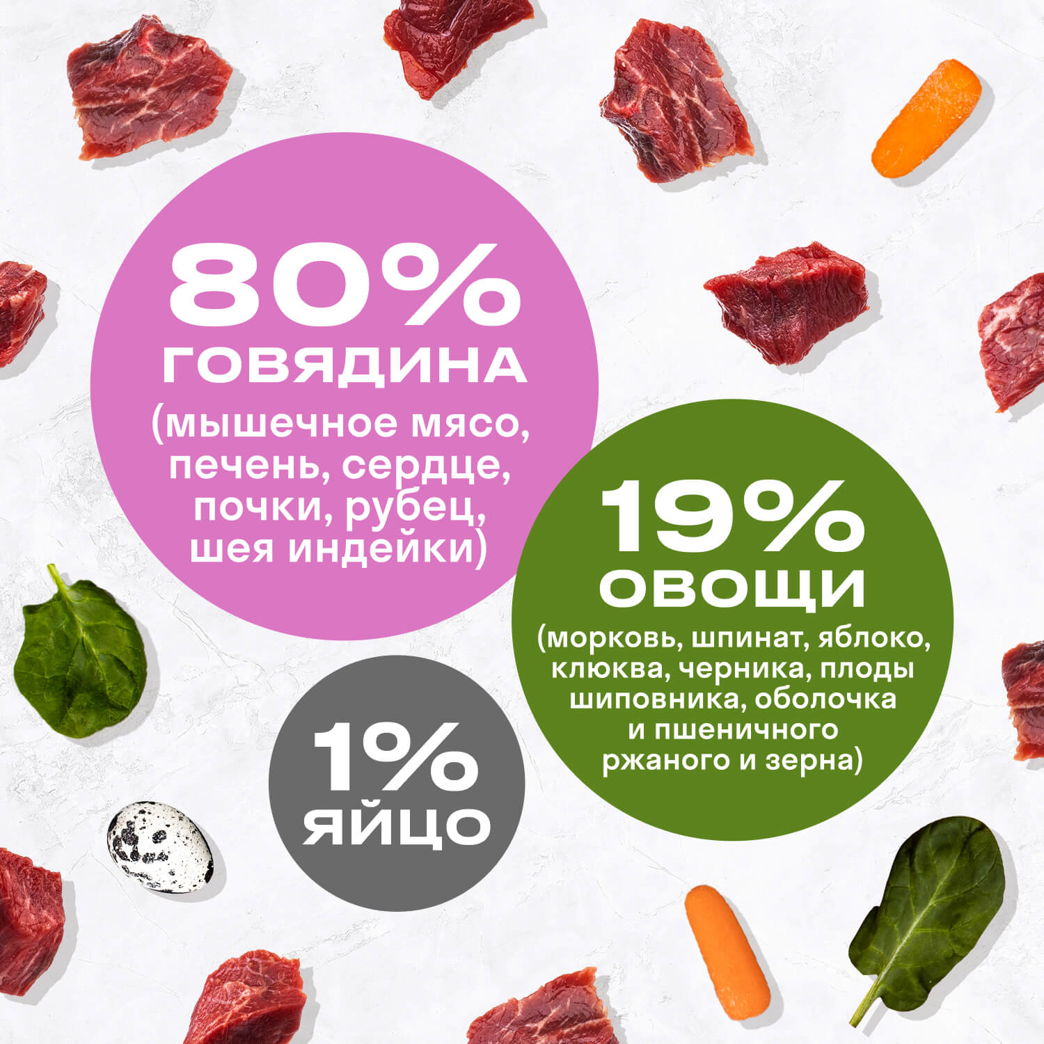 - ПРОФИЛАКТИКА МОЧЕКАМЕННОЙ БОЛЕЗНИ Натуральные компоненты и естественная влажность рациона минимизируют вероятность проблем в мочеполовой сфере.