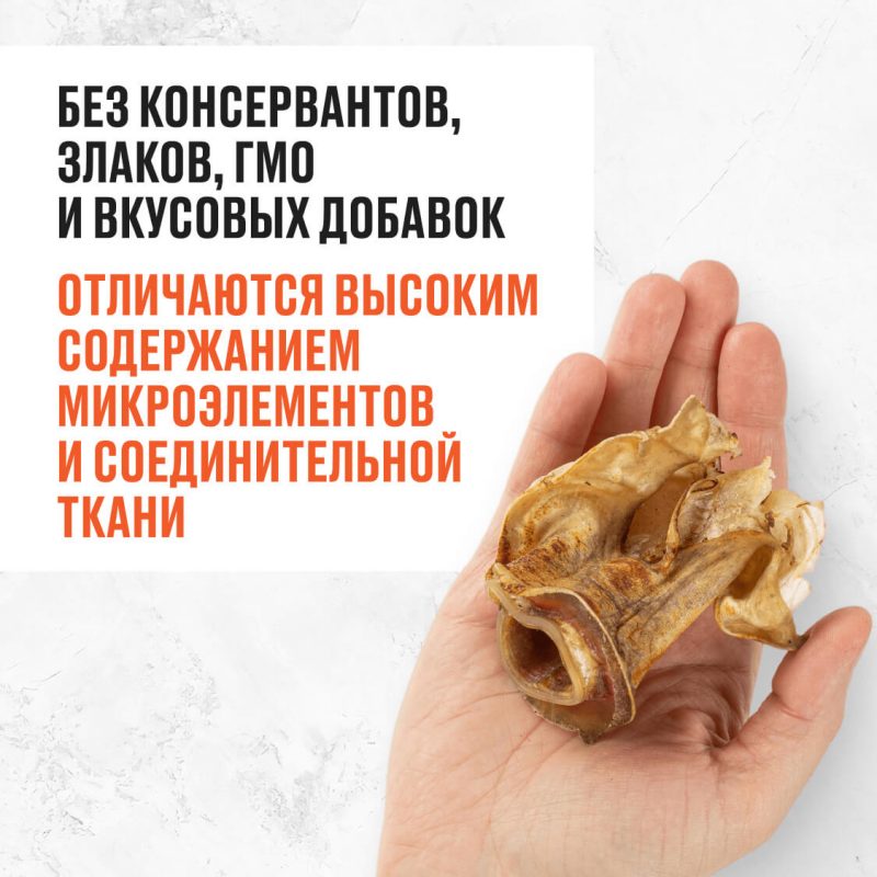 Ароматные хрустящие сушёные уши — любимое жевательное лакомство почти всех собак. Плотная структура позволяет наслаждаться вкусняшкой длительное время. Высокое содержание коллагеновых волокон благотворно влияет на хрящевую ткань суставов. Минимальное количество жира позволяет отнести лакомство к диетическому продукту.